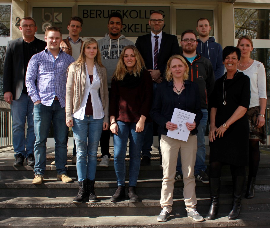 Um ihre erweiterten Sprachkenntnisse unter Beweis zu stellen, haben sich dieses Mal acht Auszubildende des Berufskollegs Erkelenz im Rahmen des Englischunterrichts auf die Prüfung zum Erwerb des Fremdsprachenzertifikats der Kultusministerkonferenz (KMK-Zertifikat) in Englisch vorbereitet und diese erfolgreich bestanden. Neben Auszubildenden für den Groß- und Außenhandel sowie Fachkräften für Lagerlogistik haben bei der jetzigen KMK-Zertifikatsprüfung erstmalig auch Berufsschüler des Ausbildungsberufs Kauffrau/-mann für Büromanagement teilgenommen.