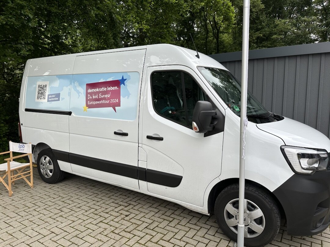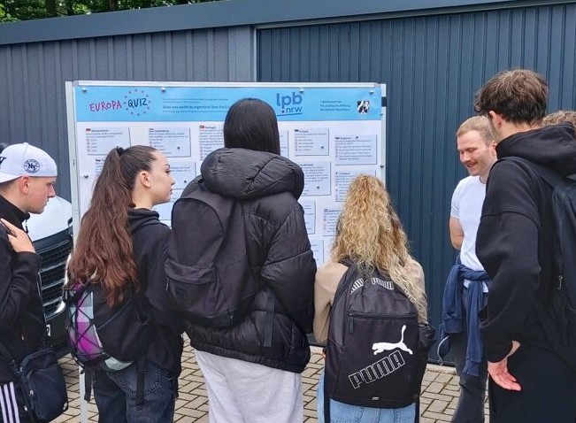 Der Europabus hat am Freitag, 17. Mai 2024, am Berufskolleg Erkelenz Station gemacht. Klassenweise konnten Schüler gemeinsam mit den Lehrern die Angebote des Standes nutzen und beispielsweise den digitalen Wahl-O-Mat oder das Europaquiz spielen.