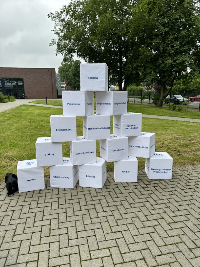 Mit der Kampagne möchte die Landeszentrale für Politische Bildung in NRW  über die Europawahl 2024 (9. Juni 2024) informieren und das Gespräch über Europa mit vielen Menschen im Land suchen. Über verschiedene Kanäle konnten die Schüler in Erkelenz darlegen, was Europa für sie bedeutet: Im Gespräch vor Ort, multimedial oder partizipativ. „Mit der Kampagne möchte die Landeszentrale zielgruppenspezifisch, niedrigschwellig und interaktiv Mut machen, sich aktiv für Europa zu engagieren, auf die Bedeutung der Teilnahme an der Wahl hinweisen, junge Erstwählerinnen und Erstwähler auf den Wahltermin aufmerksam machen und über Europa diskutieren“, erklärte Marcel Solar von der NRW-Landeszentrale für Politische Bildung in Erkelenz.