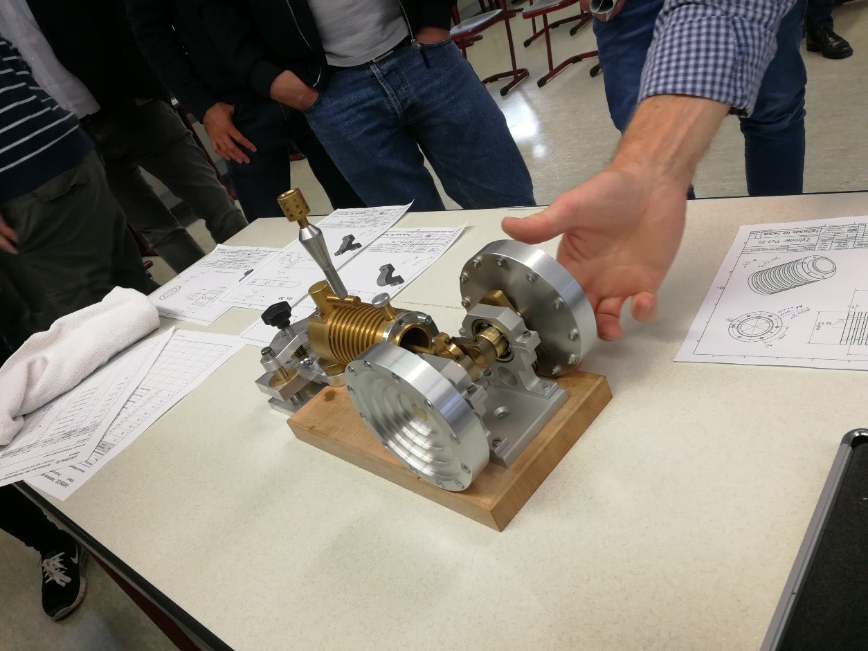 Die Abschlussklasse der Zerspanungsmechaniker präsentierte am 11.10.2019 ihre Eigenkonstruktion und Fertigung eines Vakuummotors.